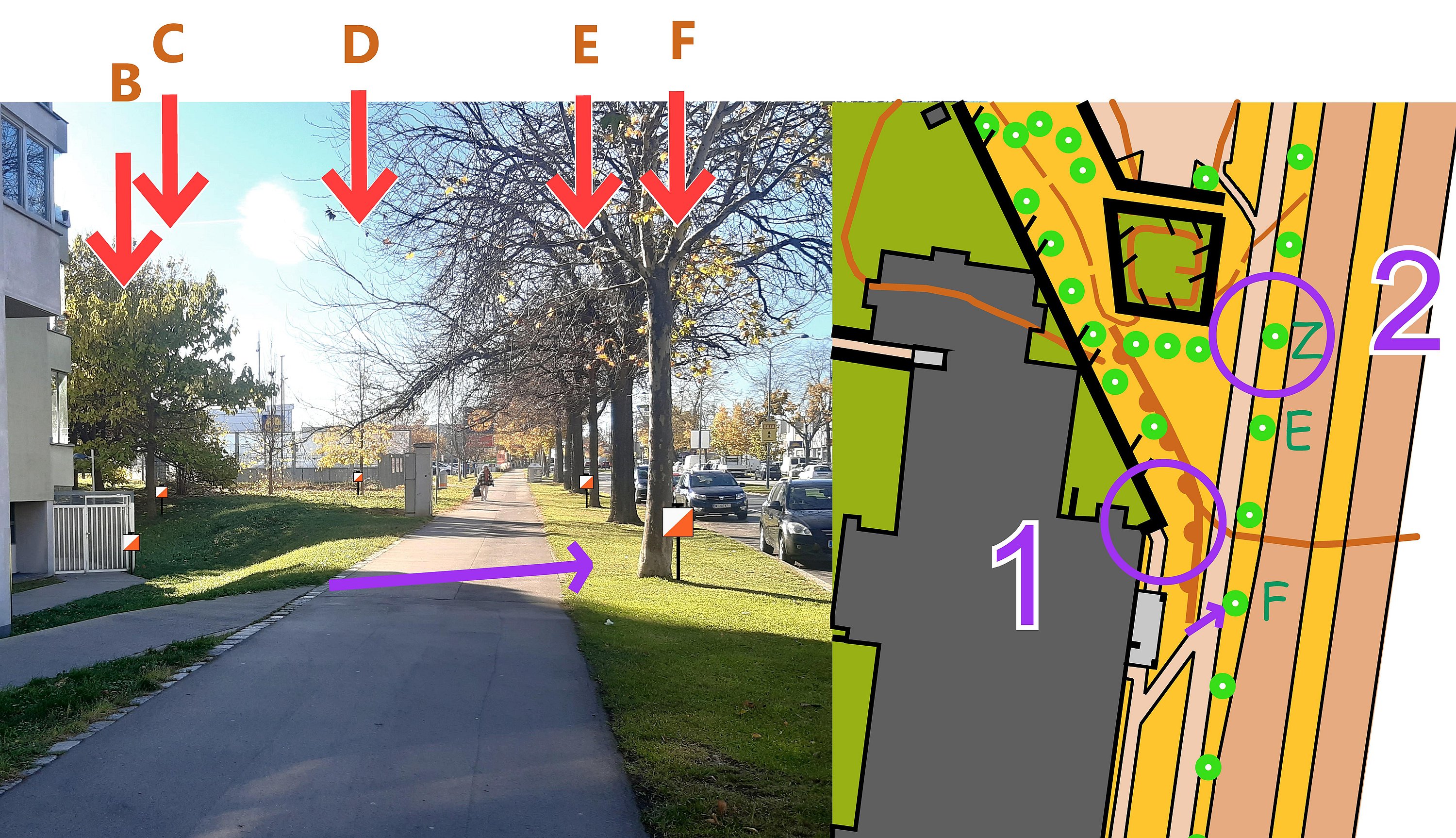Von der Weggabelung im Vordergrund ist das Postenringerl beim 4. Baum, der Postenschirm aber beim 3. Baum.